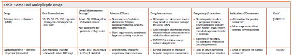 Comparison Table: Some Oral Antiepileptic Drugs (online only)