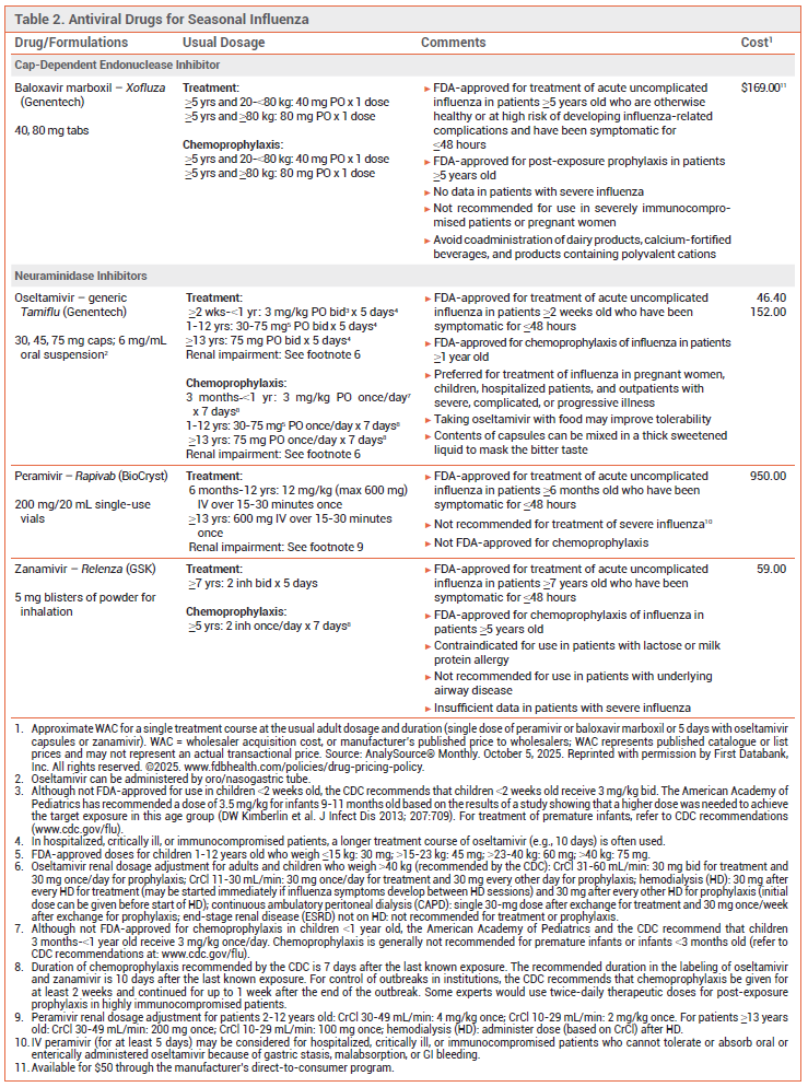 - Discuss the 2025-2026 recommendations for treatment and prophylaxis of seasonal influenza.