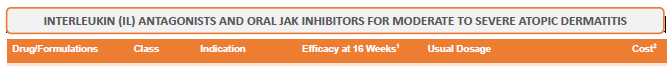 Comparison Chart: Interleukin (IL) Antagonists and Oral JAK Inhibitors for Moderate to Severe Atopic Dermatitis (online only)